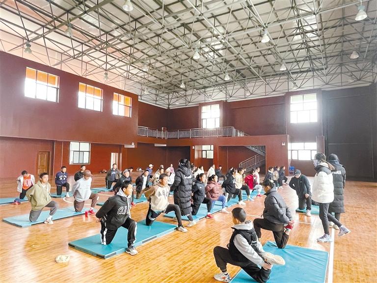圖為支教隊員帶領(lǐng)孩子們進行室內(nèi)訓(xùn)練。