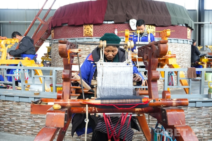 圖為在乃東區民族嘩嘰手工編織專業合作社的廠房中,員工正在編織 攝影:張藝彤