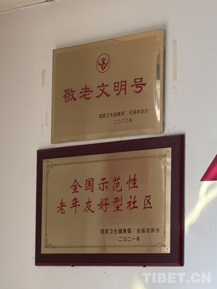 圖為社區(qū)居家養(yǎng)老服務(wù)驛站的一角掛放著所獲榮譽稱號“全國示范性老年友好型社區(qū)”“敬老文明號” 攝影:張藝彤