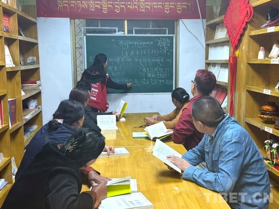 “這兩本書都是免費發(fā)放的,不管是老人還是小孩,想學(xué)習(xí)都能來拿。”旦增卓瑪拿起一本書翻給記者看,書頁上標(biāo)注著簡單的發(fā)音注釋。社區(qū)的雙語教學(xué)不搞“一刀切”,而是組建了“雙語學(xué)伴+社區(qū)老師+高校畢業(yè)生志愿輔導(dǎo)”的隊伍,根據(jù)大家的基礎(chǔ)分組教學(xué),全面調(diào)動群眾學(xué)習(xí)的積極性和主動性。