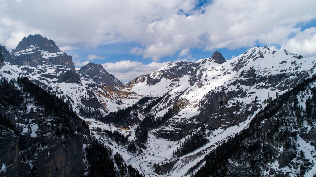 這是香格里拉市巴拉格宗景區(qū)的雪后風(fēng)光(2019年3月16日無(wú)人機(jī)拍攝)。新華社記者 胡超 攝