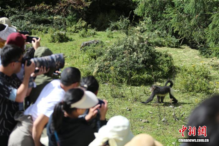 在迪慶州維西傈僳族自治縣的滇金絲猴國家公園,游客長槍短炮,目的是記錄滇金絲猴的美顏。
